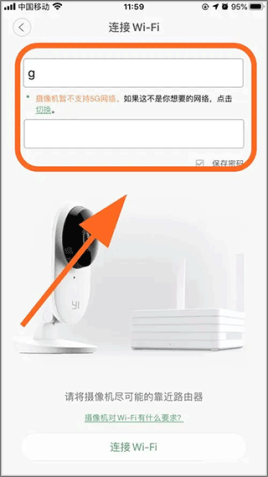 4、把手机上的二维码对准摄像头,扫描成功后,输入WiFi的名称和密码进行连接即可。