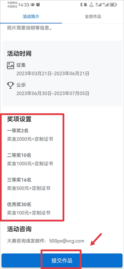 3、每个活动的投稿要求、内容以及奖励都不同,用户按照要求提交作品后等待结果即可,若成功获得获奖名单则可以收获对应奖品或奖金的奖励