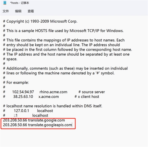 目前的方法是,只需要通过修改hosts文件,把谷歌翻译API的网站重定向到国内的服务器,即可解决以上问题。