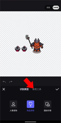 2、在打开的相册界面中选择想要抠图的图片并等待一段时间,可以看到图片背景已经被智能扣除,如果想要进一步扣除图片内容,点击下方的画笔工具