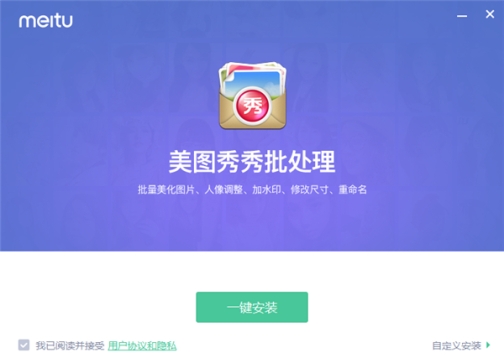 4、安装后以后就可以通过点击美图秀秀首页去打开应用啦~打开批处理后可以批量导入图片或者直接添加整个文件夹