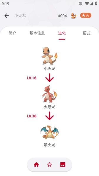 3. 进化链以箭头动态展示,火恐龙到喷火龙需Lv36