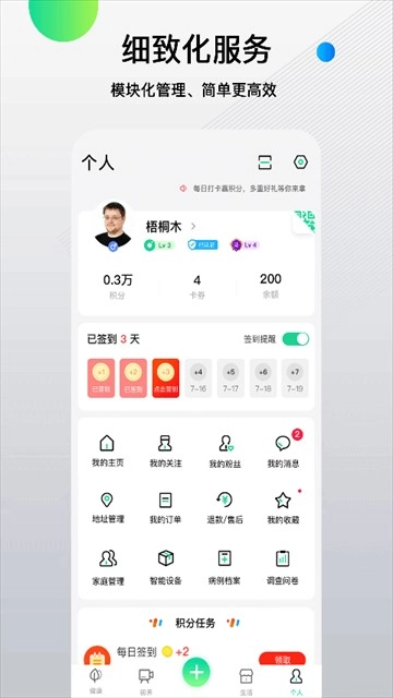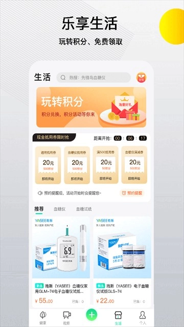 生活联动:健康饮食联动控糖,商城提供仪器耗材。积分换商品超划算。