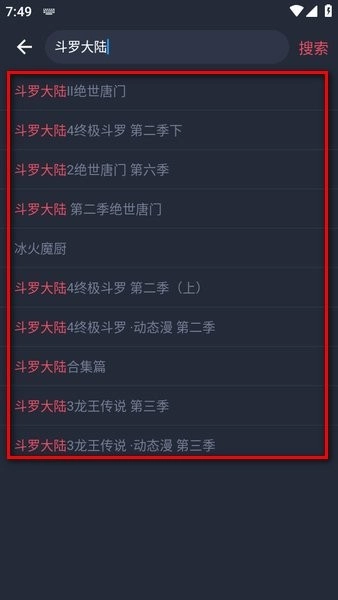 搜索框直接输入动漫名,多个版本供选择。