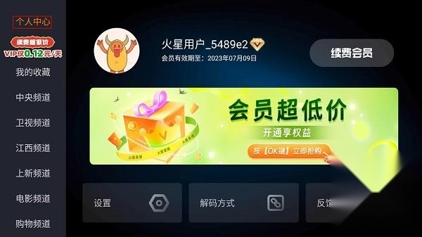 1. 点击遥控器确认键调出菜单,个人中心在左上角蓝色图标处