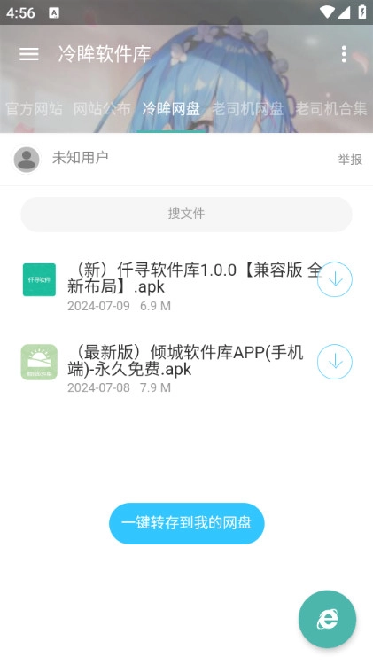 2. 遇到喜欢的应用,点"转存网盘"按钮,我的资源库里就多了一个备份。