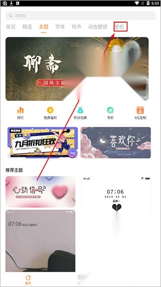 点击顶部导航栏"壁纸"入口,浏览热门推荐或按分类筛选: