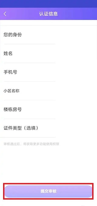 2、输入个人基本信息,小区房号,点击提交审核,
