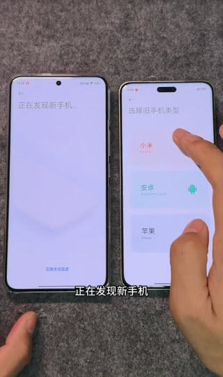 3、在旧手机的小米换机应用里点击对应的手机型号,旧手机就会自动连接到新手机上。