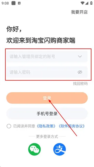 3、在账号密码登录页面,填写账号与密码,点击登录,完成账号登录。