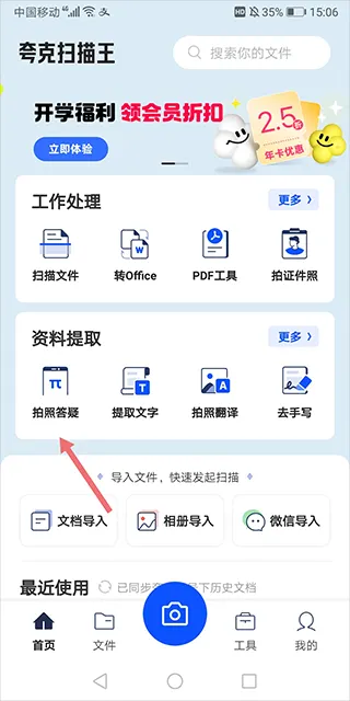 3、随后应用便会展示出解题思路与答案 4、而且并非只有一种解题思路,而是提供多种不同的思路 5、用户还能点击【继续拍题】,以免费方式继续搜索题目并获取解答 夸克扫描王的优势 1、夸克扫描王是一款高效的文件处理软件,能让纸质文件摆脱限制,通过手机便捷扫描并自动优化,让文件整理更智能 2、文字识别功能强劲,只需简单一扫,文字即可自动识别,准确无误,还能精准还原纸质文件的排版 3、助力学习更轻松:试卷可擦除手写笔迹以便重新练习,课堂PPT讲义能智能裁剪并去除摩尔纹