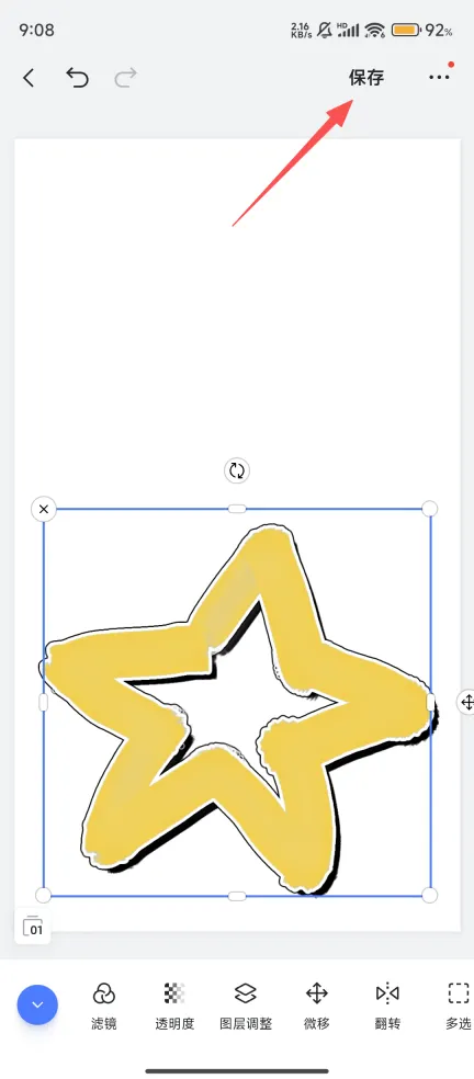 4、当所有设计步骤都完成后,我们只需点击界面右上角的【保存】按钮,就能将刚才创作的内容妥善存储好,这样后续随时都能调用使用了。