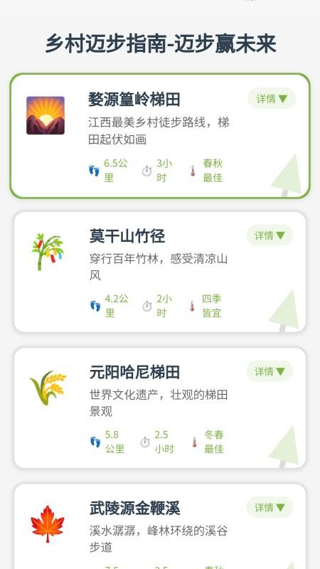 迈步赢是一款聚焦乡村旅游的服务平台,整合了众多自然风光景点,用户可在应用内自由浏览,深入了解乡村风貌,从而更有针对性地选择体验项目,舒缓浮躁心绪;平台提供详尽的景点信息,涵盖位置、行程耗时及最佳旅游时节,助力用户高效规划行程,契合个性化出行需求;应用界面简洁直观,各类信息清晰呈现,让用户能快速便捷地找到心仪景点;此外,用户还能在应用中实时查看各类金句,领略名人名言的智慧与力量,激发高效积极的生活态度;感兴趣的朋友,欢迎在线使用迈步赢软件。