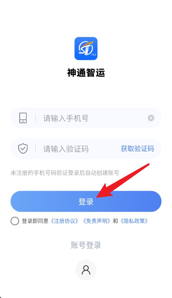 1、打开神通智运App,在登录界面输入手机号并填写收到的验证码,随后点击“登录”按钮,就能快速进入系统。