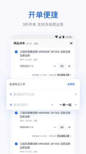 依据钢铁不同业务场景,支持一单一结、网价结算、后定价等模式。