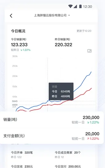 经营实况一目了然,每次打开则可以入目实时的开单数、可售库存和销售总额等数据;