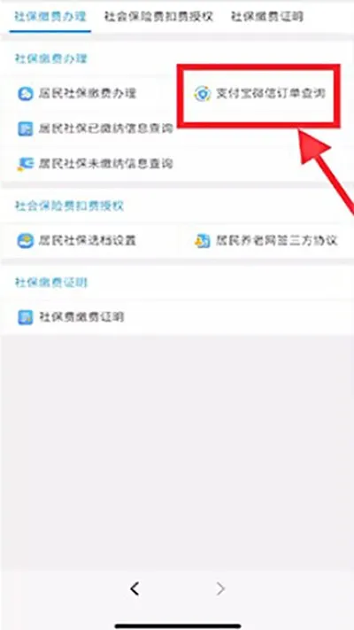 9、缴费结束后返回“社保缴费办理”界面,点击“支付宝微信订单查询”;