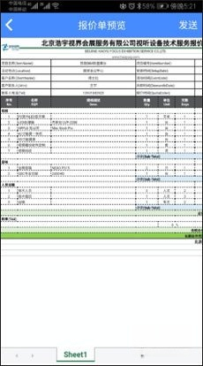 6、预览生成的报价单,然后跨平台发送到客户的微信里,客户收到的是标准EXCEL样式的报价单。