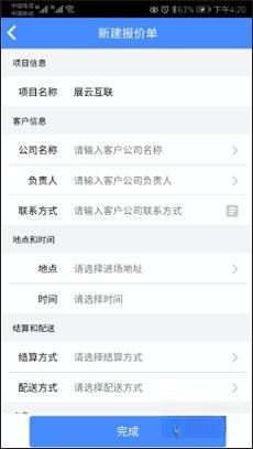 3、进入新建报价单页面,按照提示填写相关信息,项目名称是必填项其他为选填项。