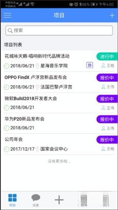 1、打开云报价后,映入眼帘的是项目、消息、+、产品库、我的等板块,而项目列表页正是其首页。