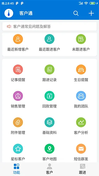 客户通是一款专业的客户关系管理软件,适用于所有从事销售、业务及客户管理相关工作的人员。核心目标是帮助用户更便捷地管理客户信息,随时掌握客户动态,不再因客户数量庞大而手忙脚乱。此外,客户通还提供Excel数据导入与导出功能,大幅提升工作效率。无论是销售人员还是客户管理人员,都能借助客户通轻松提升管理水平,实现对客户资源的系统化管理。
