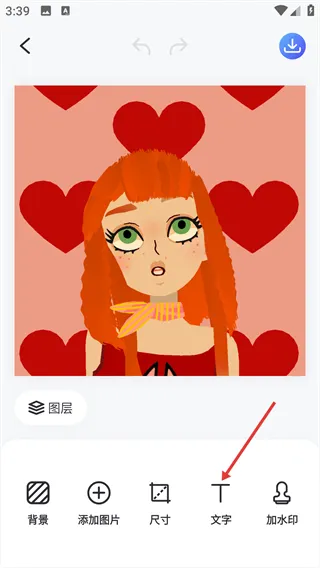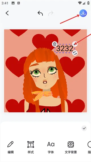 4、完成文字的添加后,点击右上角的【】按钮,可将编辑好的图片保存至设备中。