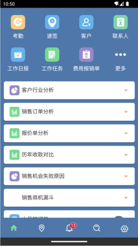 SunwayCRM软件支持用户在线移动办公管理,让用户能够轻松开展线上办公。平台考勤、工作日报、费用报销单等多种办公应用,用户可根据需求自由选择使用;同时,还能在线及时处理工作事务,并便捷掌握客户最新动态,轻松实现客户管理。