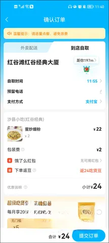 4、在这里就能看到到店自取的价格。下单支付后,你只需凭借手机号到商户店铺自取,过程简单便捷。