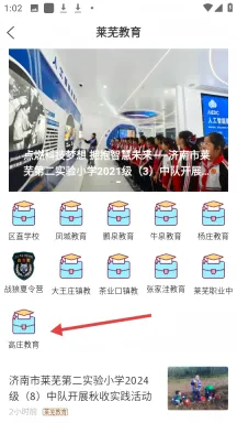 2、在莱芜教育板块,点击【高庄教育】图标,可进入高庄教育相关页面。