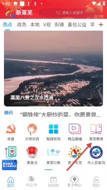 1、在首页,点击【莱芜教育】图标,可进入莱芜教育板块。