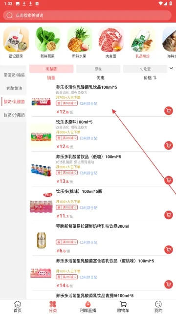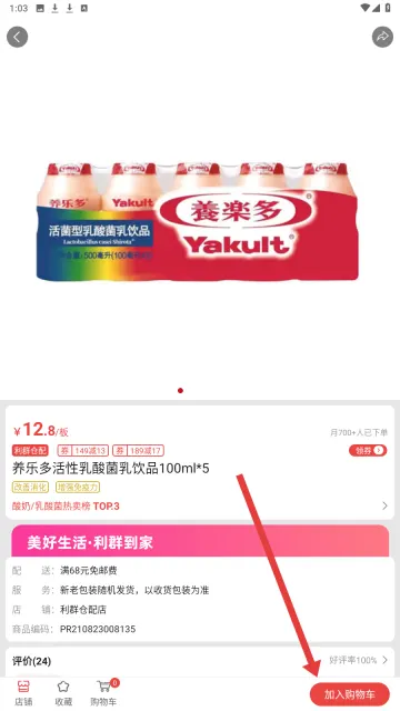 3、在商品列表选心仪商品,如【养乐多活性乳酸菌乳饮品】,点标题进详情。