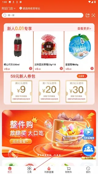 1、在首页点底部【分类】,进入商品分类页,可浏览各类商品。