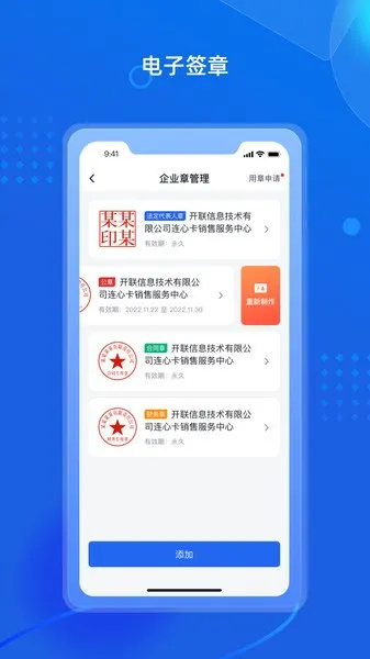 【在线印章】印章在线制作,支持企业公章、财务章、合同章、法人章等各类印章和个人签名的在线设置,使用记录全程追溯。