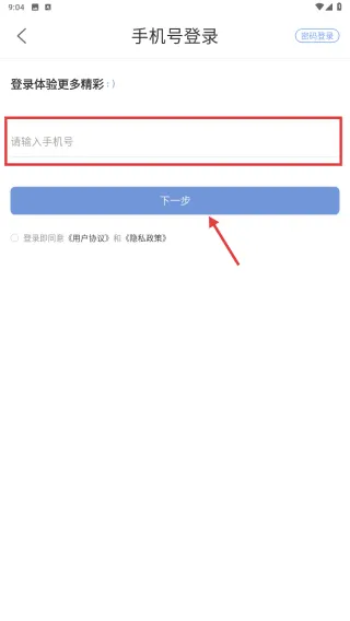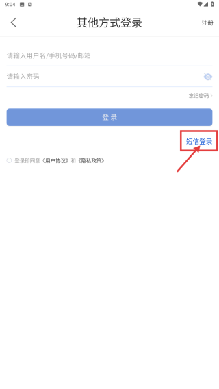 3、在登录界面,点击短信登录选项,切换至手机号登录信息填写页。