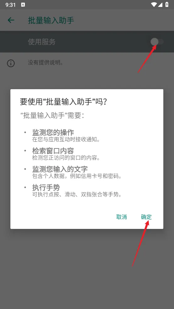 4、如图所示,打开使用服务的开关,点击"确定"即可。