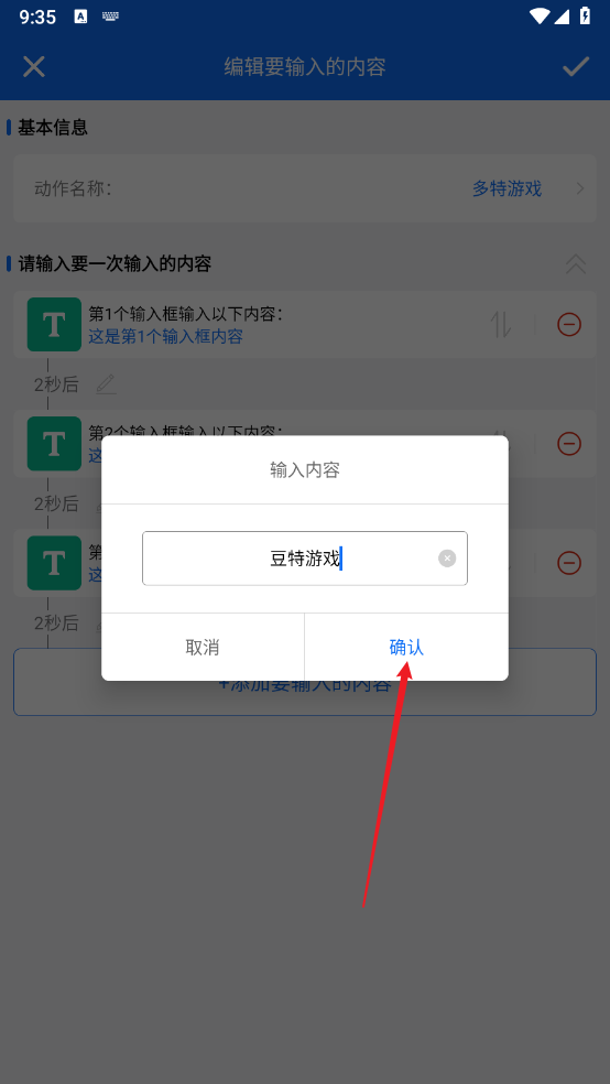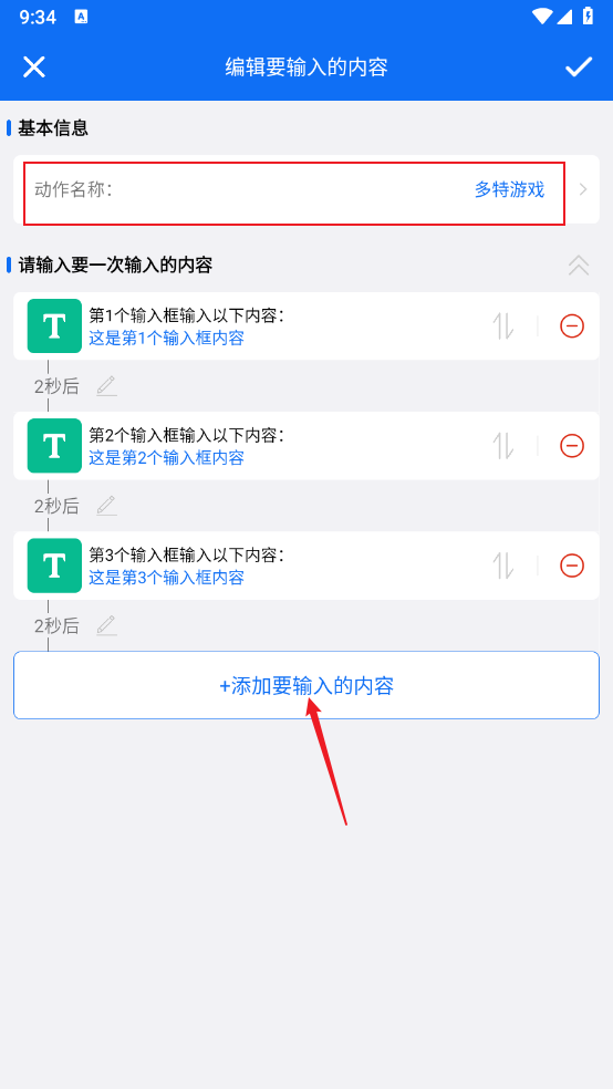 8、在编辑页面可以自定义动作名称,点击"添加要输入的内容"。