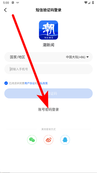 3、选择账号密码登录选项,进入账号密码登录页面。