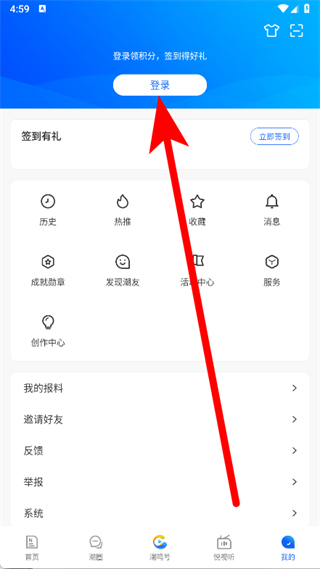 1、打开潮新闻,点击页面底部的我的,进入个人页面。