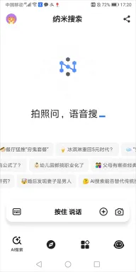 1、AI搜索功能里的语音拍照搜索,能让你随手一拍,就能像把图片给朋友看那样,向它询问相关知识。