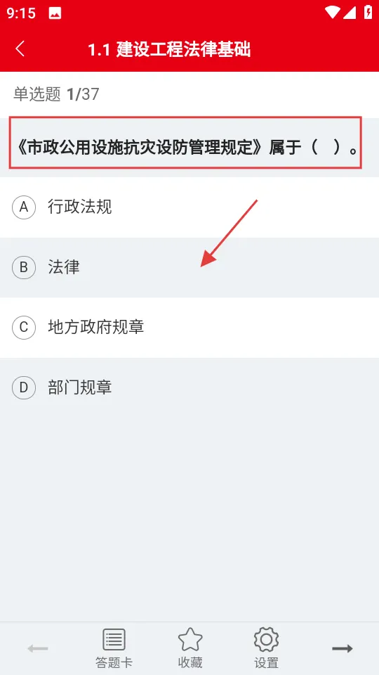 3、答题界面会展示题目与选项,完成作答后,可对答题卡进行操作、收藏题目,还能跳转至下一题。