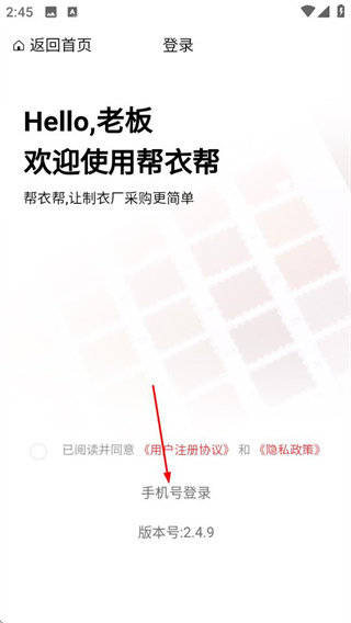1、打开帮衣帮首页后,点击页面底部的“我的”选项,即可进入登录页面。