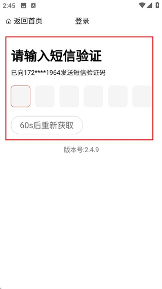 4、进入短信验证页面后,填写收到的验证码,以此完成登录流程。