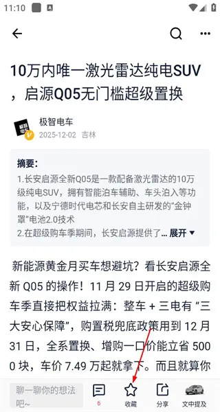 4、进入资讯详情页面后,浏览内容摘要及相关信息,点击收藏按钮即可将该资讯保存下来,方便后续查看。