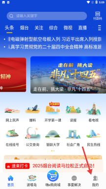 1、打开安装好的烟台E家,进入新闻头条首页。
