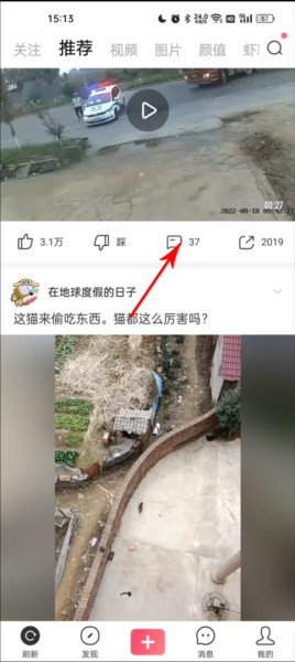 2、找到你想插眼的视频,点击评论进入评论页面;