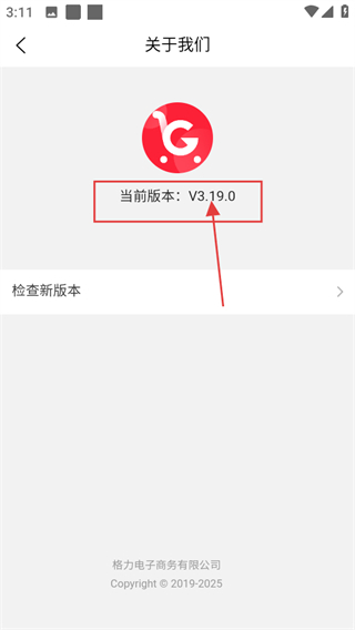 在“关于我们”页面中,可以查看当前版本信息,例如当前版本为V3.19.0。
