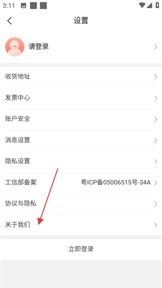 3、在设置页面,点击关于我们可进入关于我们页面。