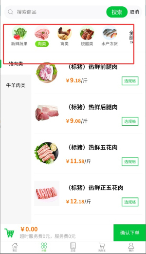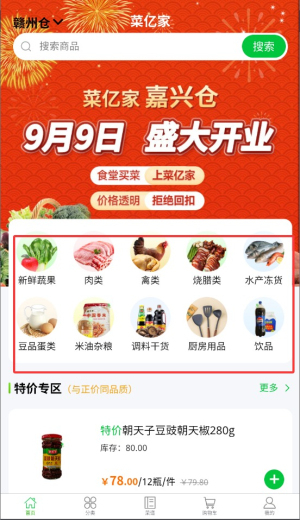 1、采购中心精心设置蔬菜瓜果、肉禽蛋品、粮油调味、水产海鲜等六大核心食材品类,每个品类细分多个产地等级、质量标准和规格包装选项。