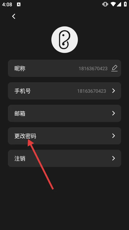 3、接着在个人信息页面,点击【更改密码】选项,进入更改密码页面。