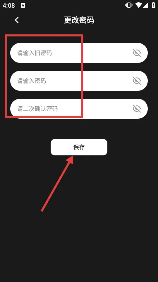 4、在更改密码页面,依次输入旧密码、新密码、确认新密码,点击【保存】按钮,完成密码修改操作。